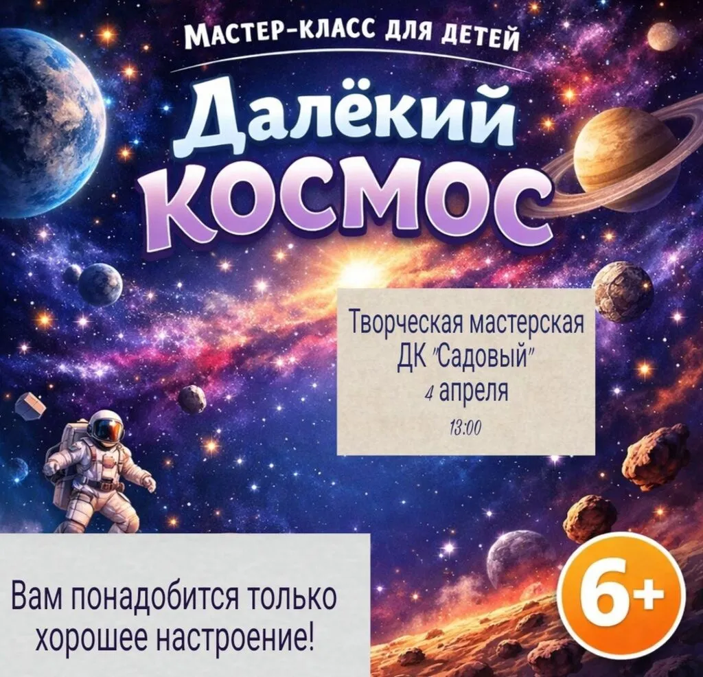 🎨 Приглашаем Вас принять участие в увлекательном мастер-классе для детей "Далёкий космос". Вместе с Вами мы погрузимся в невероятную атмосферу творчества!