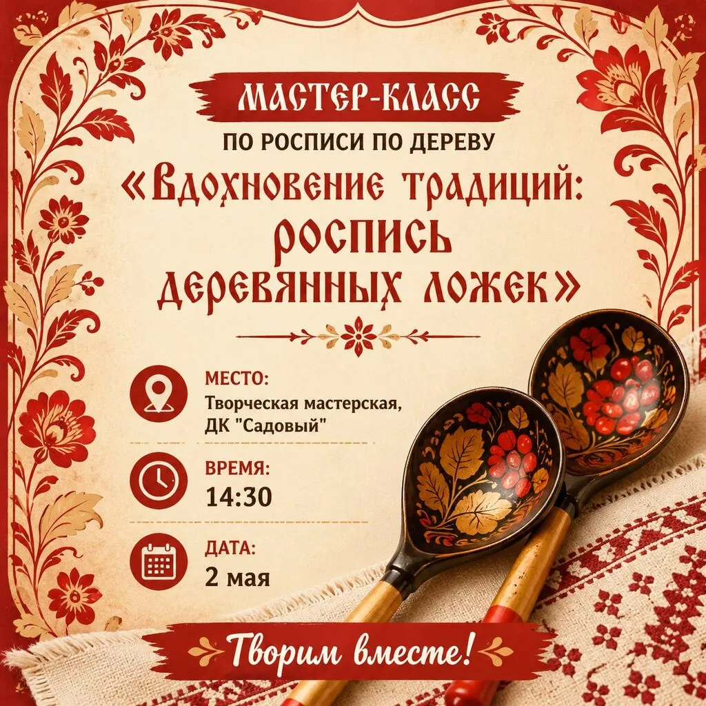 🎨 Приглашаем Вас принять участие в мастер-классе по росписи по дереву "Вдохновение традиций: роспись деревянных ложек". Вместе с Вами мы погрузимся в невероятный мир творчества и традиций!